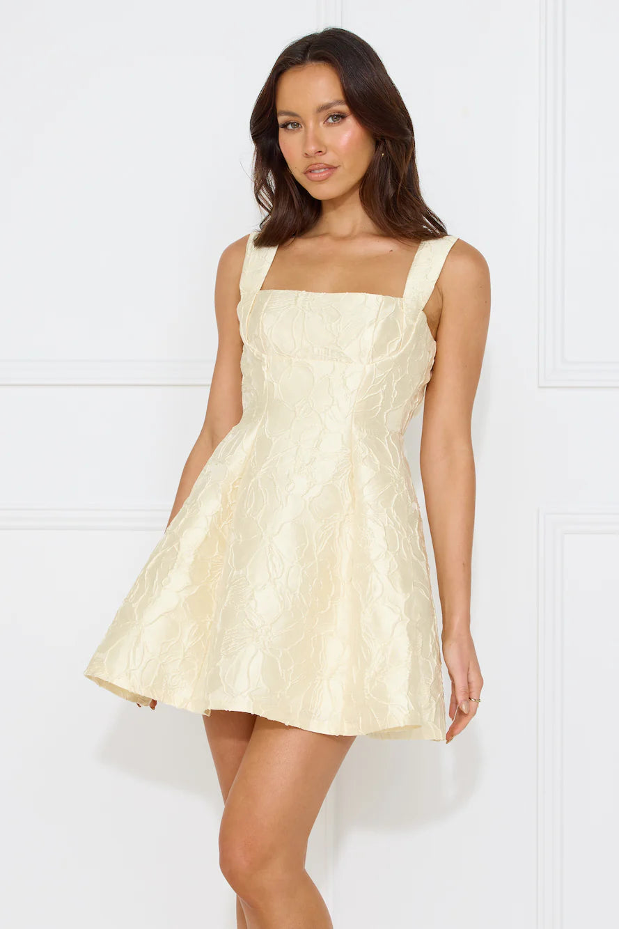 Fall in love with the dreamiest mini dress. The Elite Silhouette Mini Dress features an A-line fit, a textured fabrication and a gorgeous tie-up back. Style with heels for a fancy event.