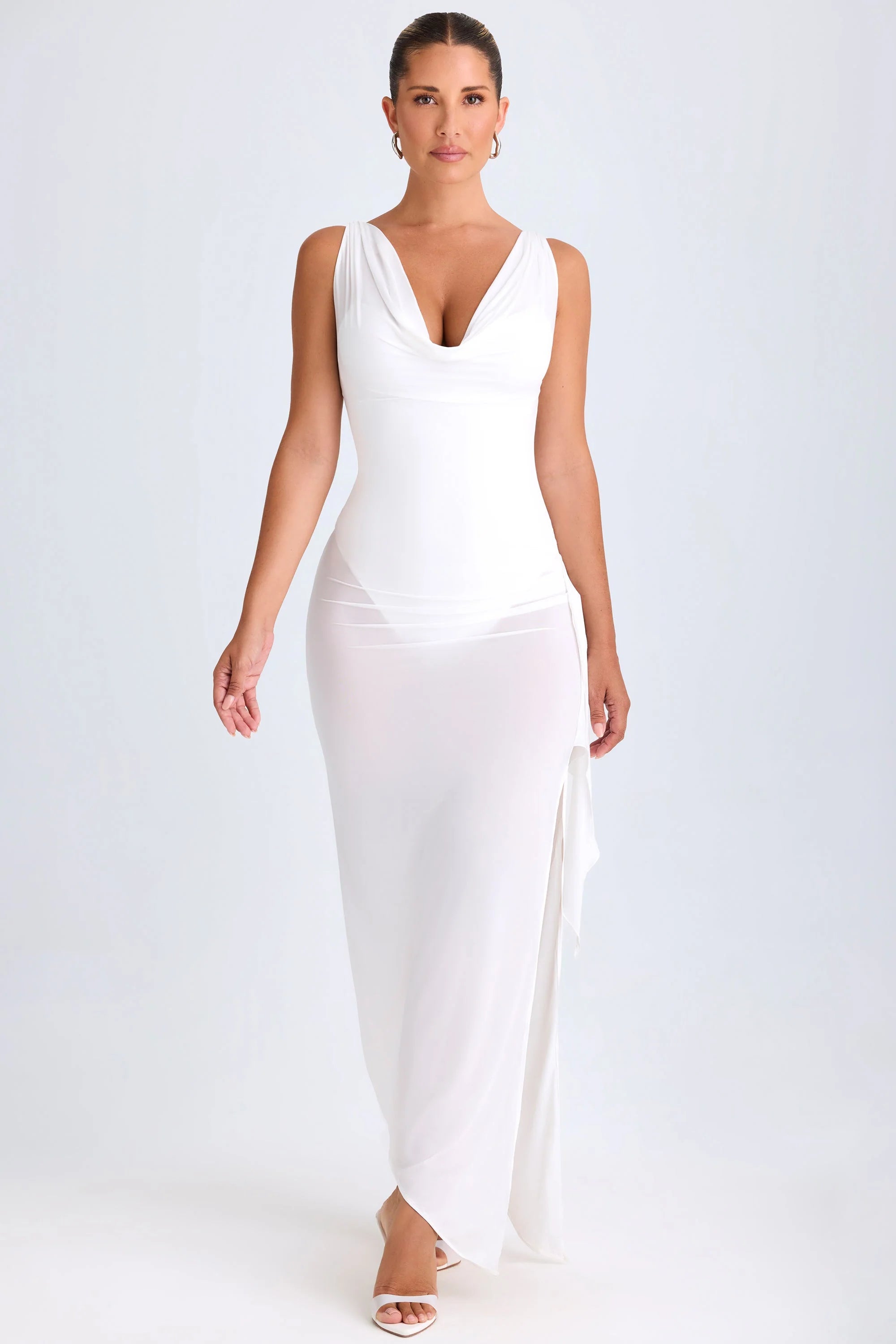 Ultimate holiday looks. Designed to take you from beach bar to rooftop dinner dates, the Deva midaxi dress is crafted from premium, soft-touch sheer jersey and underlaid with a built-in bodysuit for enhanced coverage and support. It’s cut to an asymmetric silhouette and elevated with statement elements, including statement waterfall detailing, a thigh-high side split and a perfectly draped cowl neckline.