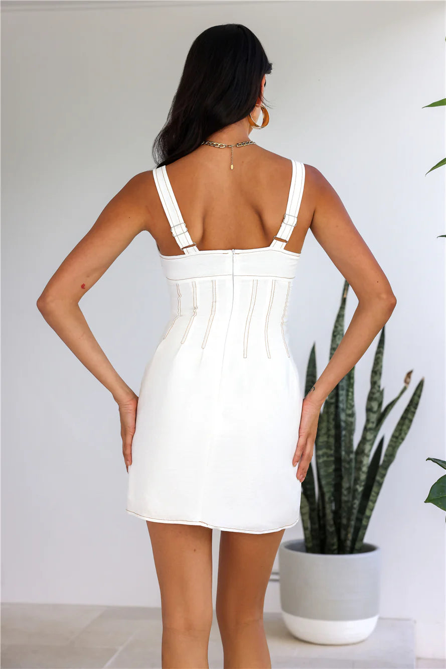 We're in love with the Sea Air Linen Blend Mini Dress for the warmer seasons. Featuring contrasting stitching and a cutout to the bodice. Style with sandals for an all-day look.