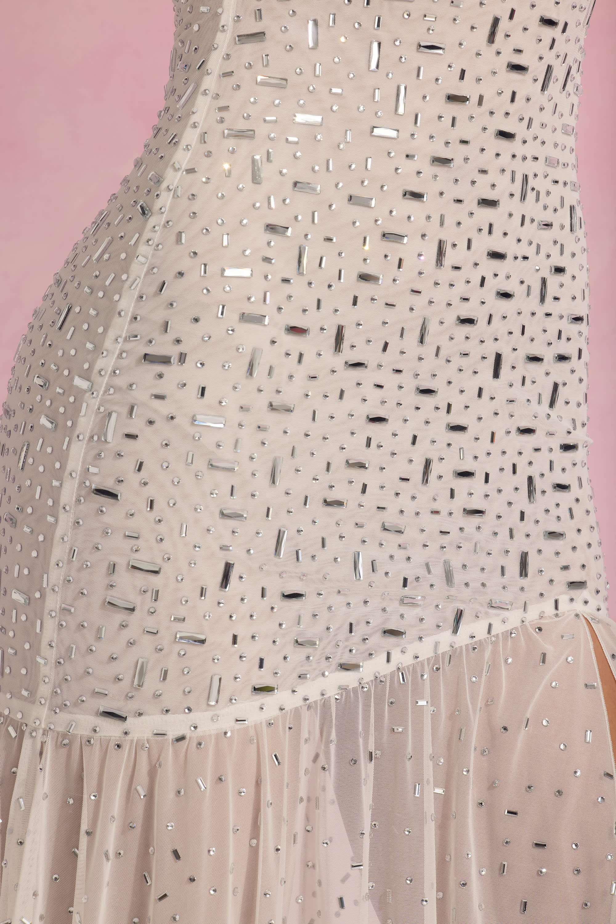 Made for milestone moments, the Kerra maxi dress is crafted from premium, dual-layered 20D stretch mesh with a figure-hugging bodice that enhances your natural curves and features a sheer asymmetric hem designed for dynamic movement with every step. It comes with detachable, adjustable straps and is fully embellished with our signature HOTFIX crystals for sparkle you’ll have to see to believe.